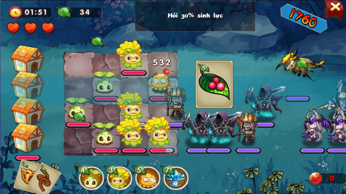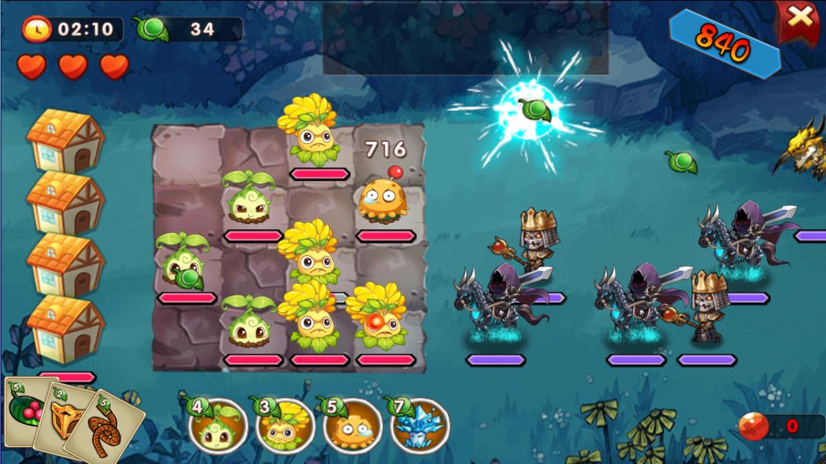 -The drops of fruits on the position on the map to be defensive before the invasion of monsters.